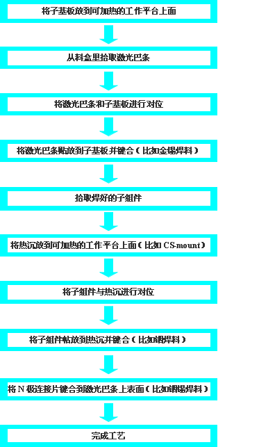 T1S貼片機是針對研發(fā)和生產(chǎn)的芯片鍵合機,可以完成高精度的激光巴條組裝,包括巴條到子基板和子組裝到熱沉的放置和鍵合。與激光單管相反,激光巴條由多個邊緣發(fā)光的單管激光器在一個硅巴條上組成。光束的輸出功率得到顯著地提高,且擴大了應用范圍。激光巴條是高功率產(chǎn)品,用于要求小而高效的發(fā)光單元的場合。激光巴條主要作為高功率激光器的光學諧振腔的泵浦源,也經(jīng)常用于醫(yī)療領域。