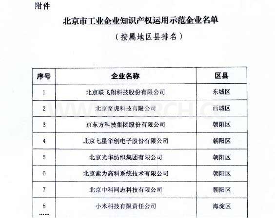 根據(jù)《工業(yè)和信息化部辦公廳關(guān)于開展工業(yè)企業(yè)知識產(chǎn)權(quán)運(yùn)用示范活動的通知》(信廳科函[2014]31號)要求,北京市經(jīng)濟(jì)和信息化委員會組織開展了示范企業(yè)征集評審活動。經(jīng)過多輪評審,認(rèn)定北京41家企業(yè)為北京市工業(yè)企業(yè)知識產(chǎn)權(quán)運(yùn)用示范企業(yè)。